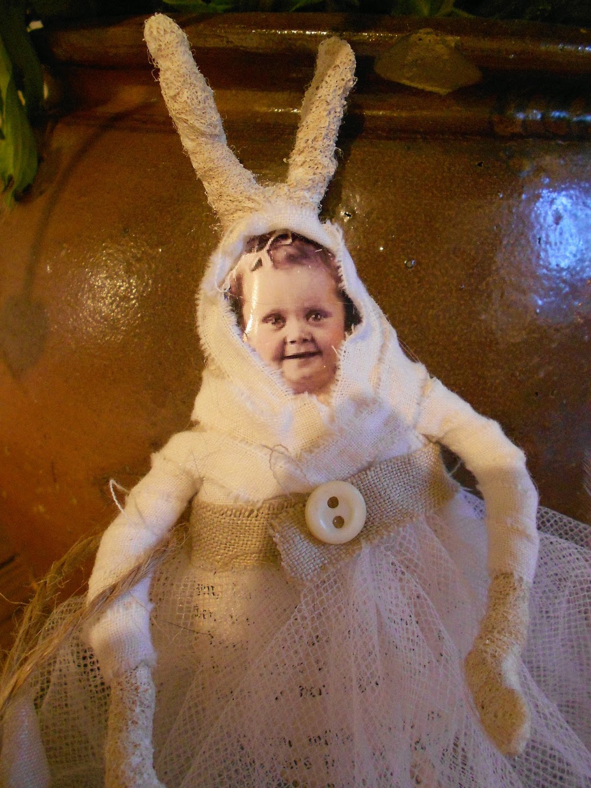 That means getting the cotton wool out (in this case spun-cotton batting fibres), some wire, vintage images and pieces of fabric. And here you may have a look at the possible outcome: